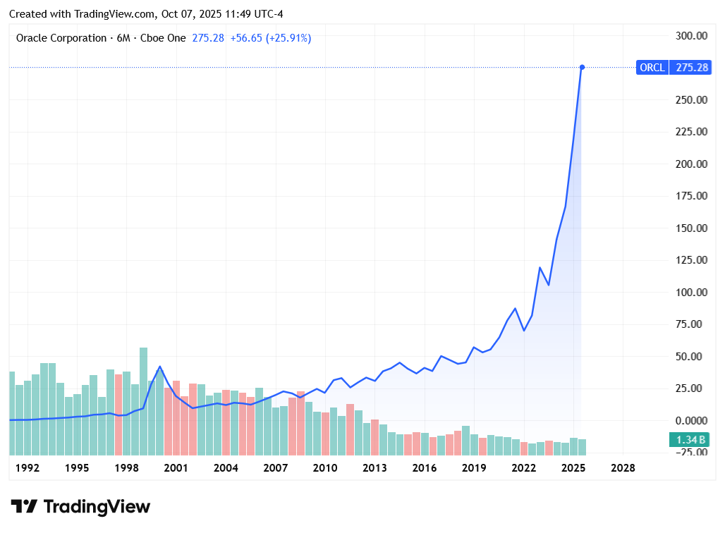 Oracle’s most recent quarterly earnings announcement simply underscored this, as the company highlighted key contract wins related to its role as a provider of AI computing capacity that are projected to send revenue in its cloud-computing business up 700% over the next three years. Shares surged more than 35% and Oracle added approximately $250 billion to its market capitalization.
